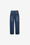 A relaxed wide-leg denim pant with a clean silhouette, subtle fading, and classic five-pocket construction. Finished with a signature leather logo patch for a refined, timeless look.