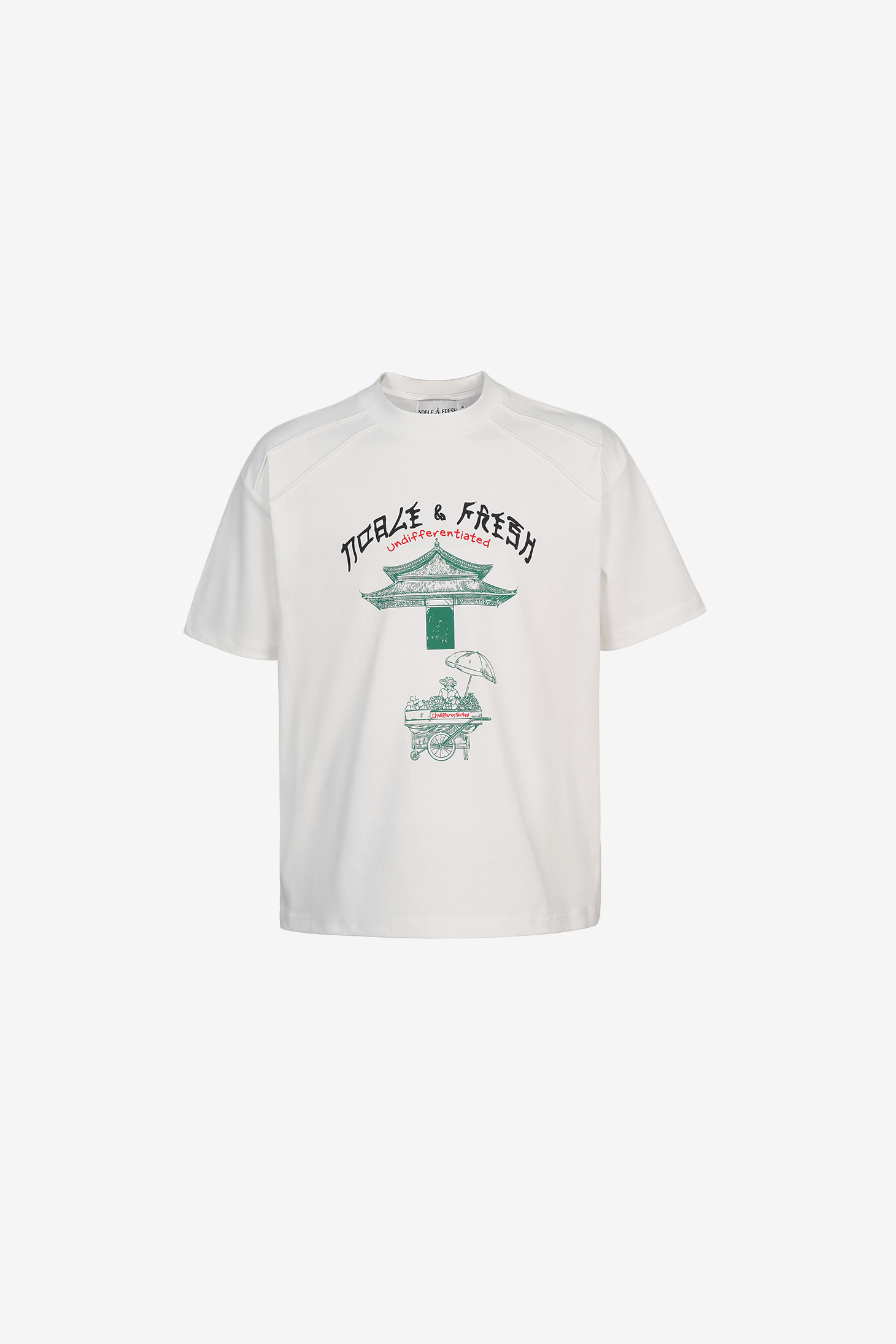 An oversized T-shirt crafted in soft cotton jersey, featuring a Chinese street cart graphic printed at the front. Designed with a classic crew neckline and relaxed short sleeves for everyday...