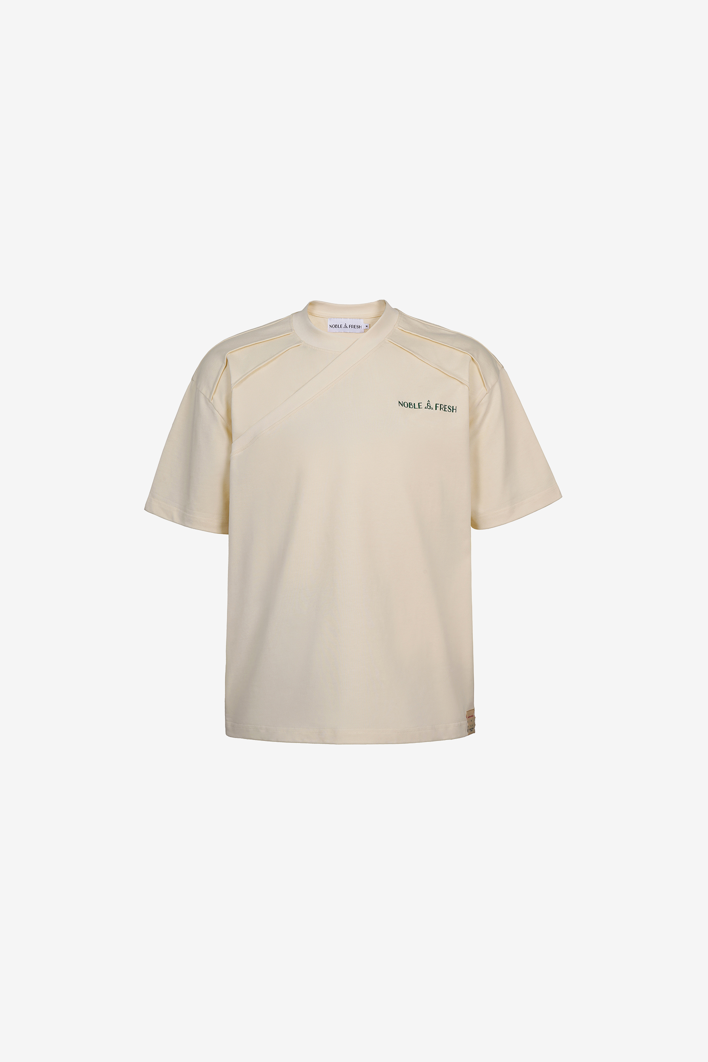 An oversized T-shirt crafted in soft cotton jersey, designed with signature panel detailing across the shoulders for a structured yet relaxed silhouette. Finished with a minimal NOBLE & FRESH logo at the chest, blending clean design with everyday versatility.